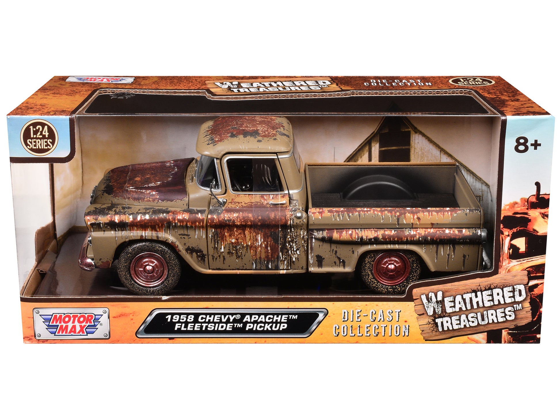 1958 Chevrolet Apache Fleetside Pickup Brown (Rusted) "Weathered Treasures" Series 1/24 Diecast Model Car by Motormax 1/24.