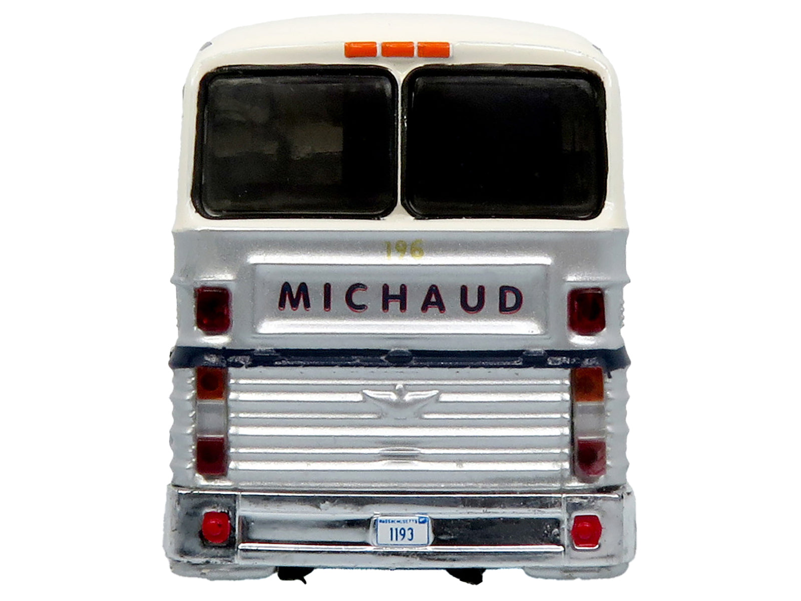 1969 Eagle Model 05 Coach Bus "Michaud Bus Lines Yankee Traveler" White and Silver with Black Stripes Limited Edition to 504 pieces Worldwide 1/87 (HO) Diecast Model by Iconic Replicas 1/87.