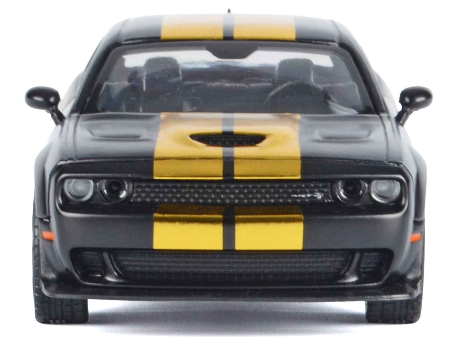 2018 Dodge Challenger SRT Hellcat Widebody Matt Black with Gold Stripes and Graphics "Midnight Eclipse" Series 1/24 Diecast Model Car by Motormax 1/24.