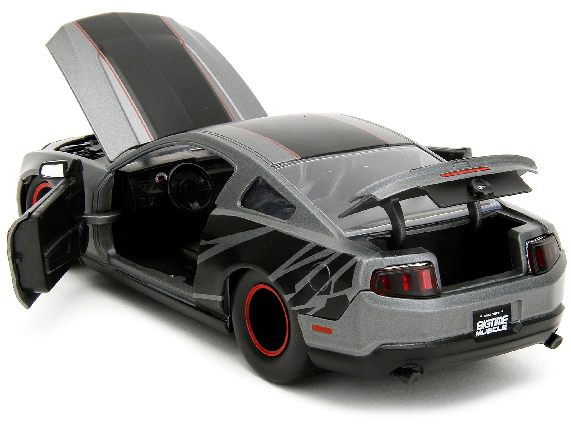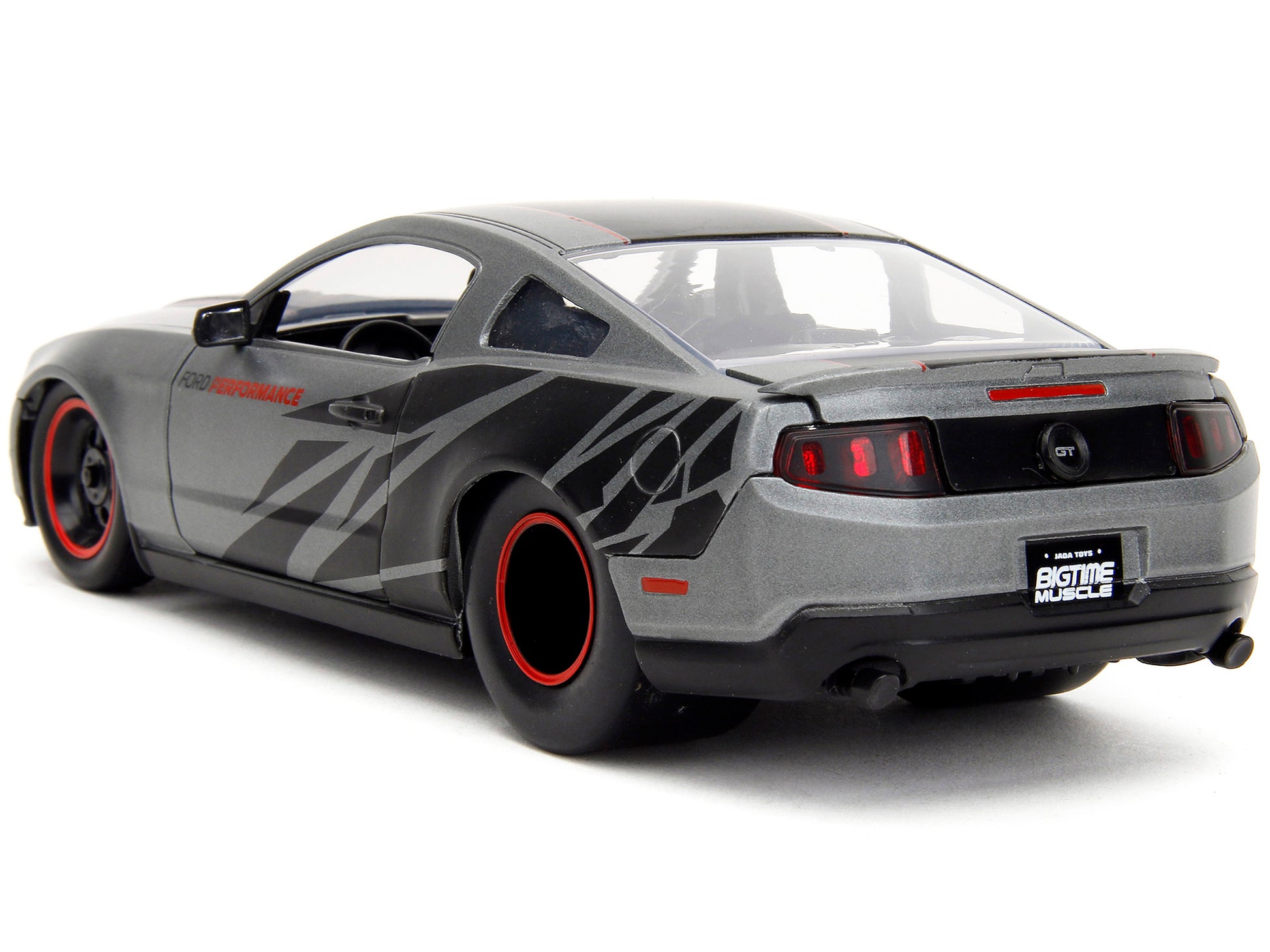 2010 Ford Mustang GT Matt Gray Metallic with Black Graphics and Stripes "Ford Performance" "Bigtime Muscle" Series 1/24 Diecast Model Car by Jada