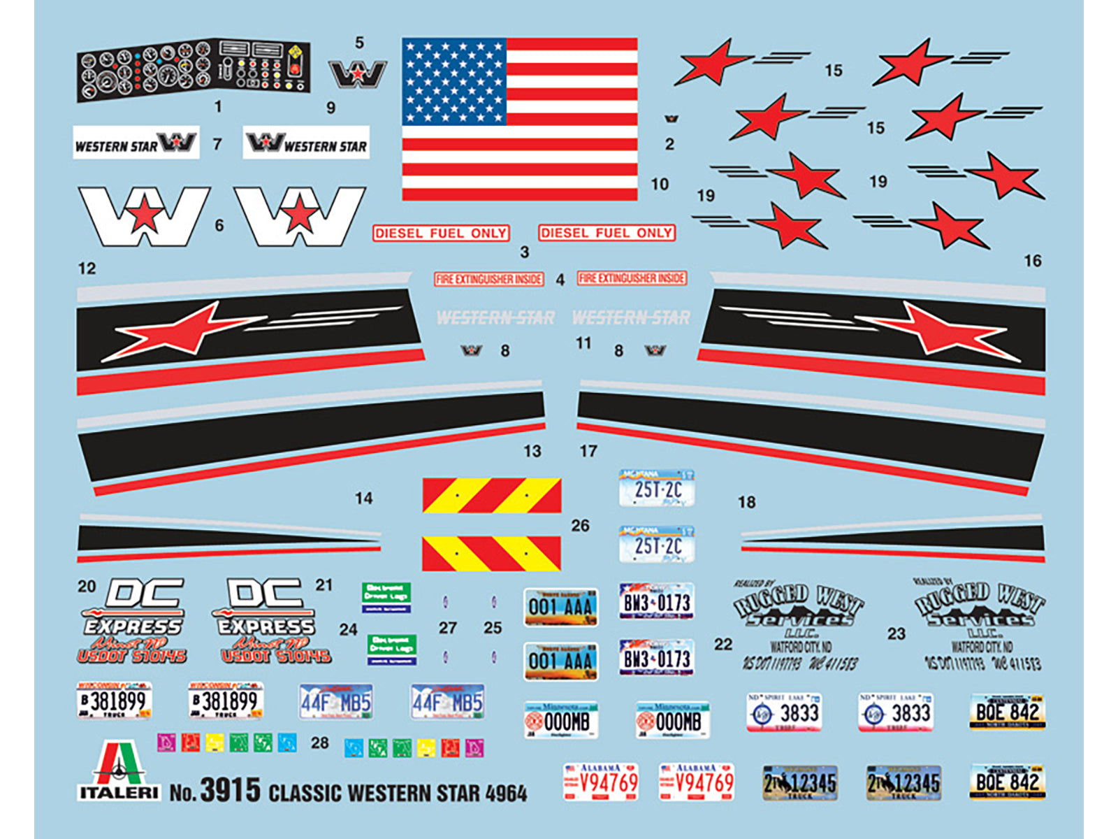 Skill 3 Model Kit Western Star Classic 4964 Truck Tractor 1/24 Scale Model by Italeri 1/24.
