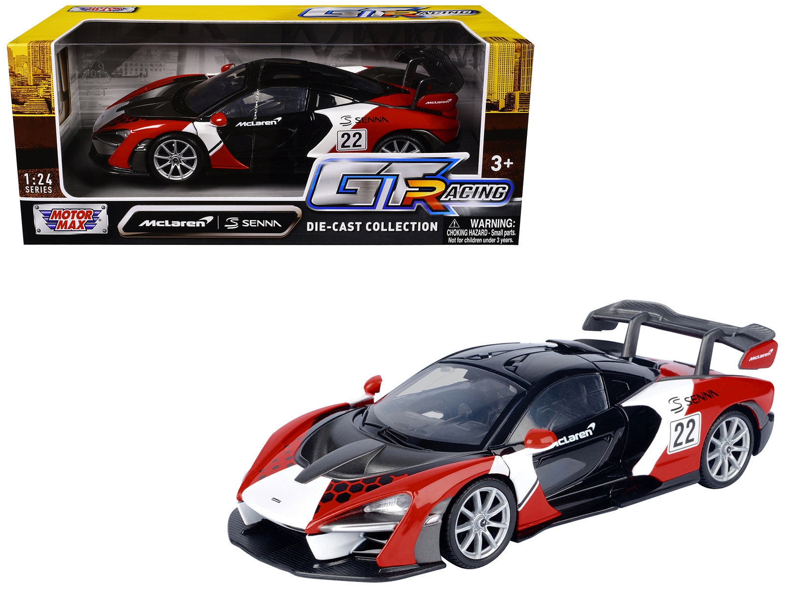 McLaren Senna #22 Black with Red and White Graphics "GT Racing" Series 1/24 Diecast Model Car by Motormax Category: McLaren Models. High-quality diecast collectible.