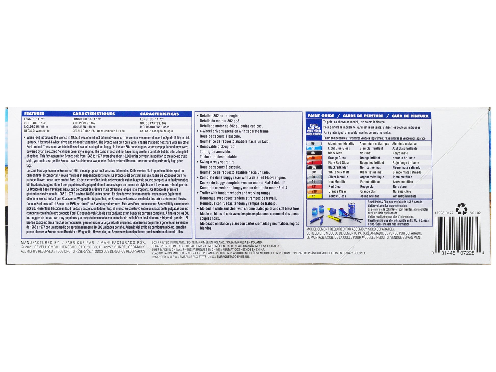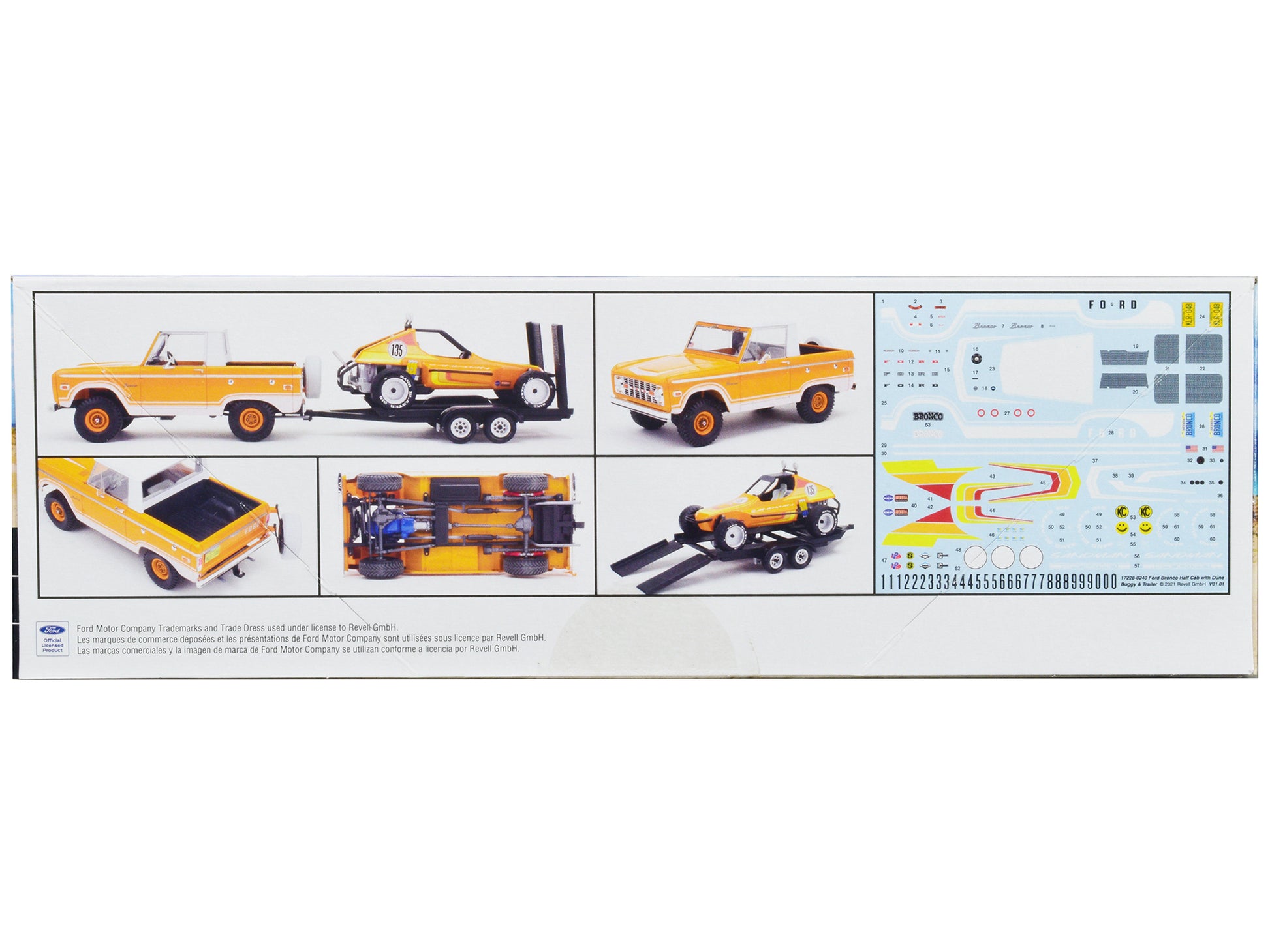 Level 5 Model Kit Ford Bronco Half Cab with Dune Buggy and Flatbed Trailer 1/25 Scale Model by Revell 1/25.