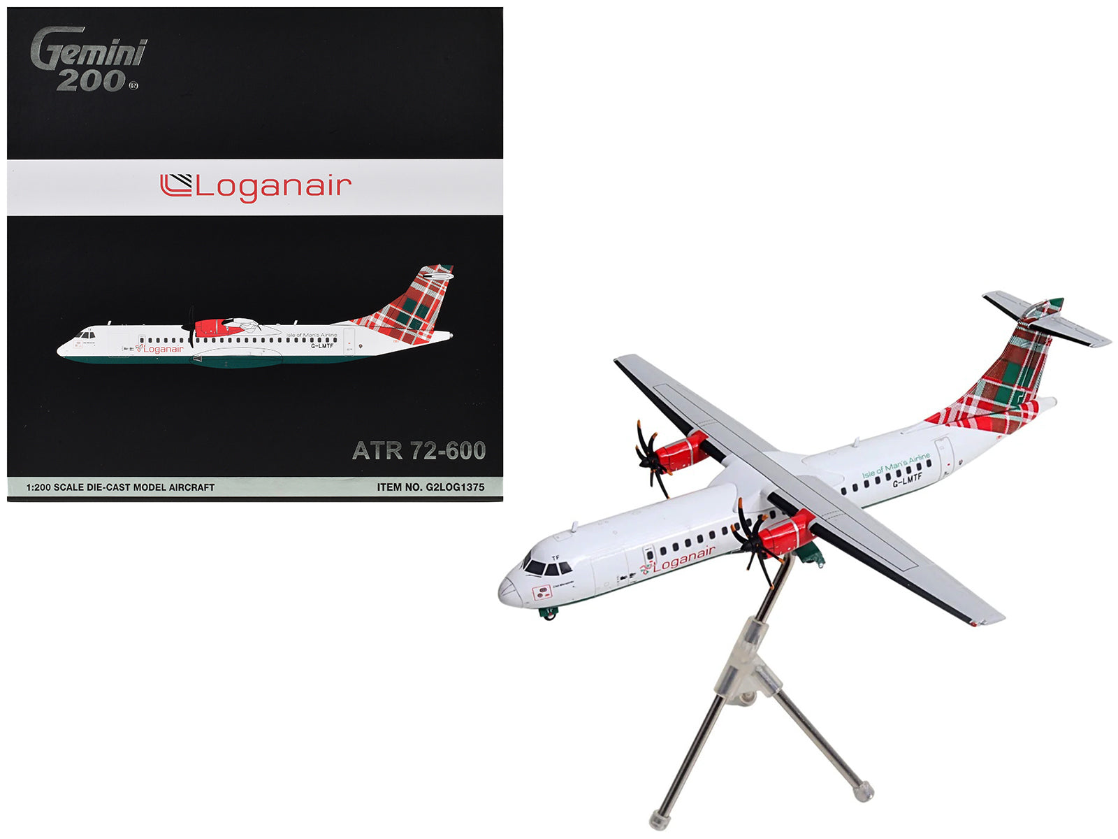 ATR 72-600 Commercial Aircraft "Loganair - Isle of Man's Airline" (G-LMTF) White with Green and Red Plaid Tail "Gemini 200" Series 1/200 Diecast Model Airplane by GeminiJets
