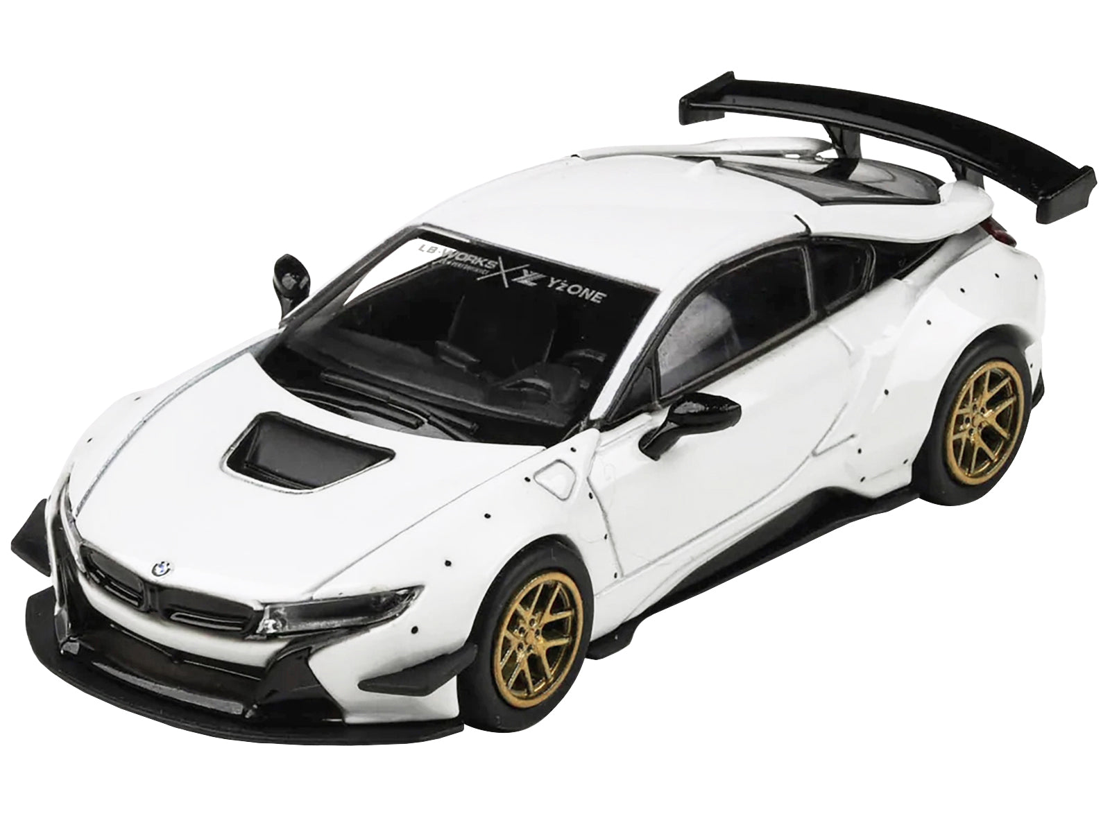 BMW i8 Liberty Walk White with Gold Wheels 1/64 Diecast Model Car by Paragon Models