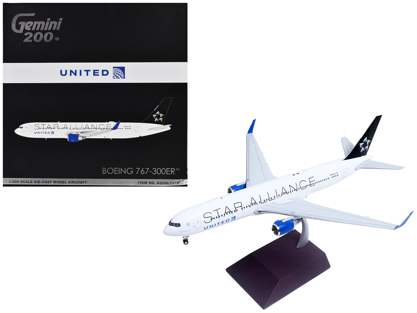 Boeing 767-300ER Commercial Aircraft "United Airlines - Star Alliance" (N653UA) White with Black Tail "Gemini 200" Series 1/200 Diecast Model Airplane by GeminiJets
