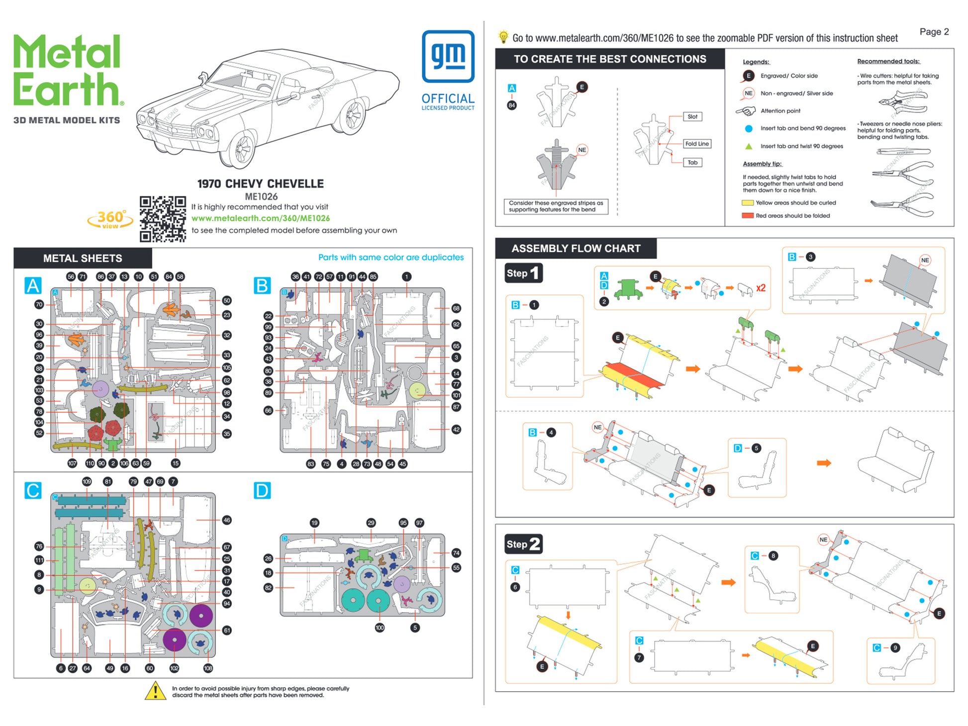Model Kit 1970 Chevrolet Chevelle SS Green with White Stripes (Challenging Difficulty) Steel Model by Metal Earth.