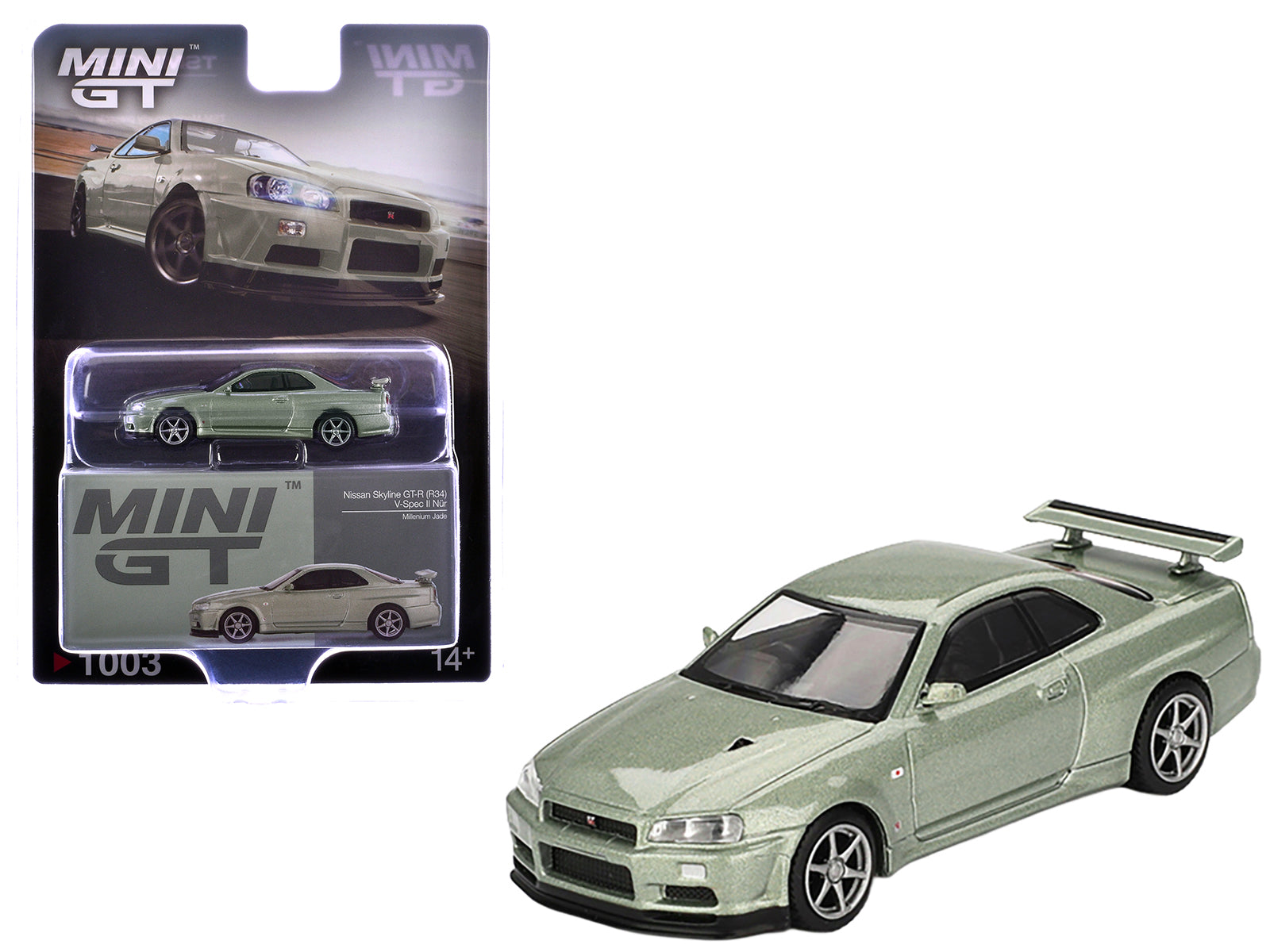 Nissan Skyline GT-R (R34) V-Spec II Nur RHD (Right Hand Drive) Millenium Jade Metallic Limited Edition 1/64 Diecast Model Car by Mini GT