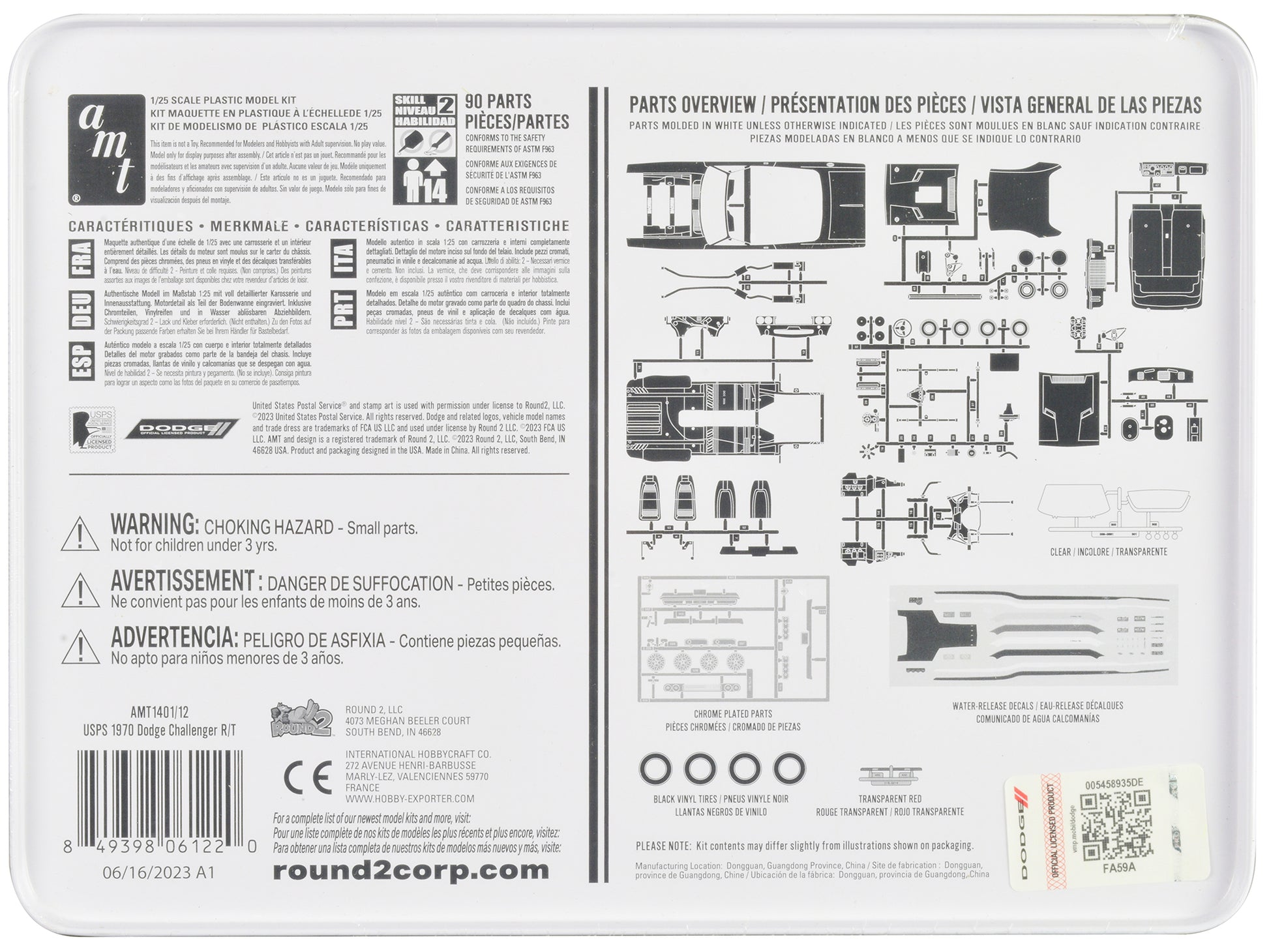 Skill 2 Model Kit 1970 Dodge Challenger R/T USPS (United States Postal Service) "Auto Art Stamp Series" 1/25 Scale Model by AMT 1/25.