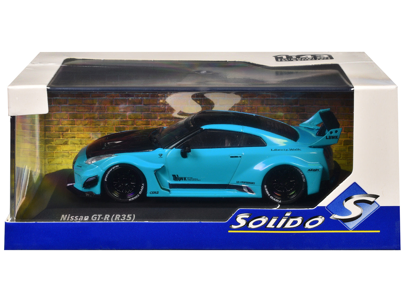 2019 Nissan GT-R (R35) LB-Silhouette Works RHD (Right Hand Drive) Miami Blue with Black Hood and Top 1/43 Diecast Model Car by Solido