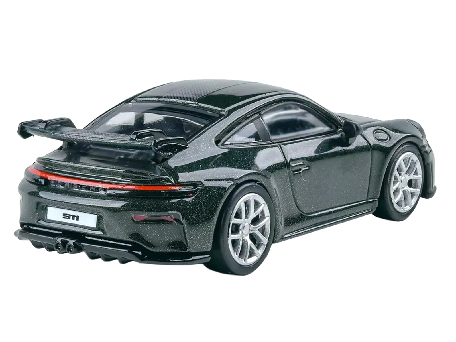 2025 Porsche 911 GT3 (992.2) Oak Green Metallic Neo with Carbon Stripe 1/64 Diecast Model Car by Paragon