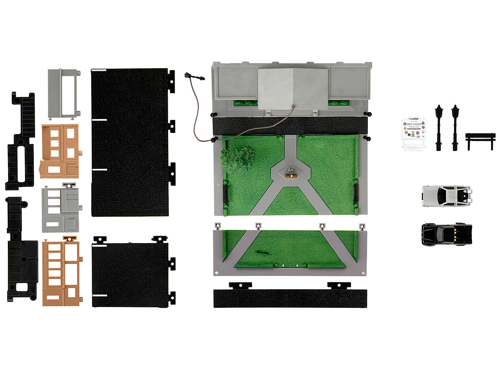 Hill Valley Courthouse Diorama with Black Pickup Truck and Delorean "Back to the Future" (1985) Movie "Nano Scene" Series Model by Jada