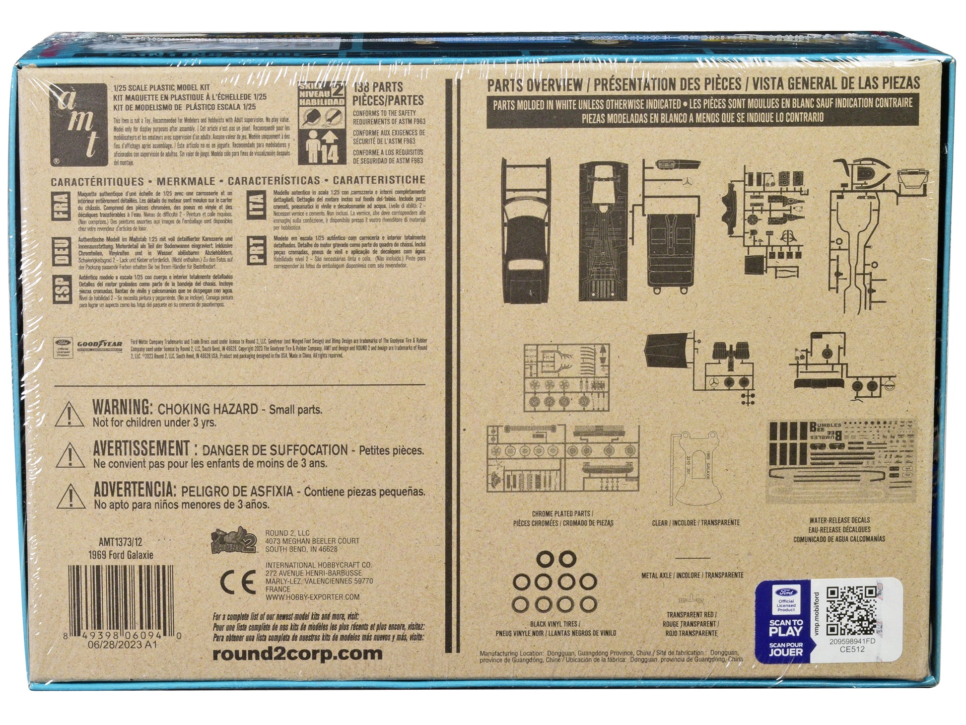 Skill 2 Model Kit 1969 Ford Galaxie 3-in-1 Kit 1/25 Scale Model by AMT 1/25.