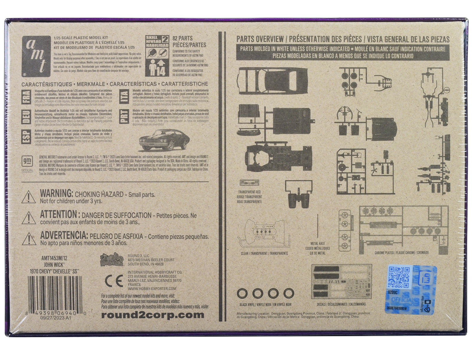 Skill 2 Model Kit 1970 Chevrolet Chevelle SS "John Wick" (2014) Movie 1/25 Scale Model by AMT 1/25.