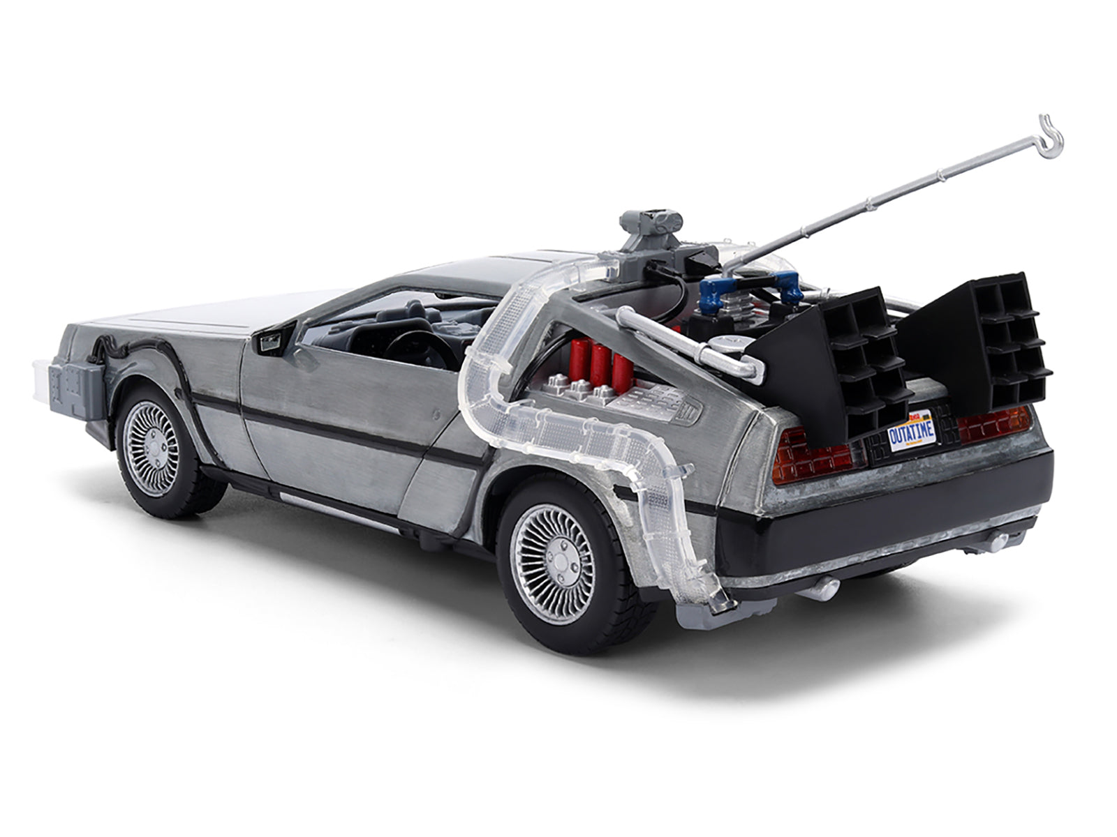 DeLorean Brushed Metal Time Machine with Lights "Back to the Future" (1985) Movie "40th Anniversary" Special Packaging "Hollywood Rides" Series 1/24 Diecast Model Car by Jada Made by Jada. Category: DeLorean Models, Movie/TV Series Models. High-quality diecast collectible.