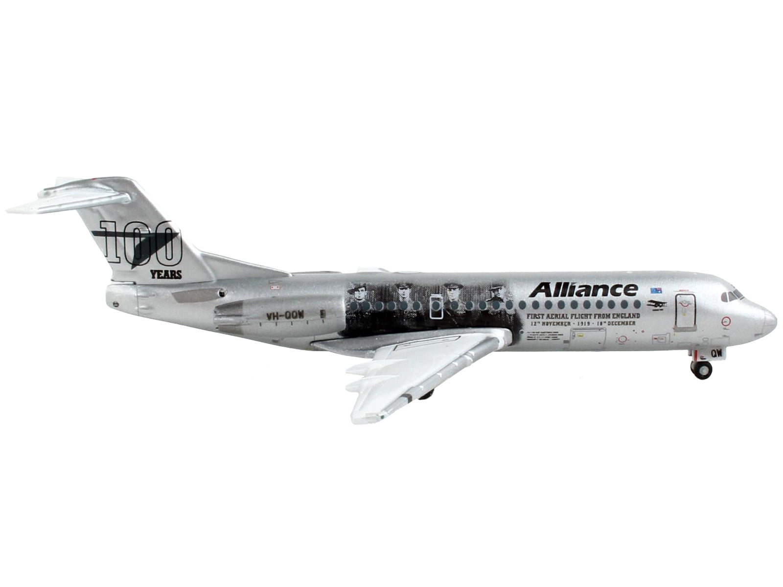 Fokker F70 Commercial Aircraft "Alliance Airlines - 100 Years First Flight from England" Silver Metallic 1/400 Diecast Model Airplane by GeminiJets Made by GeminiJets. Category: Aircrafts and War Planes, Fokker. High-quality diecast collectible.