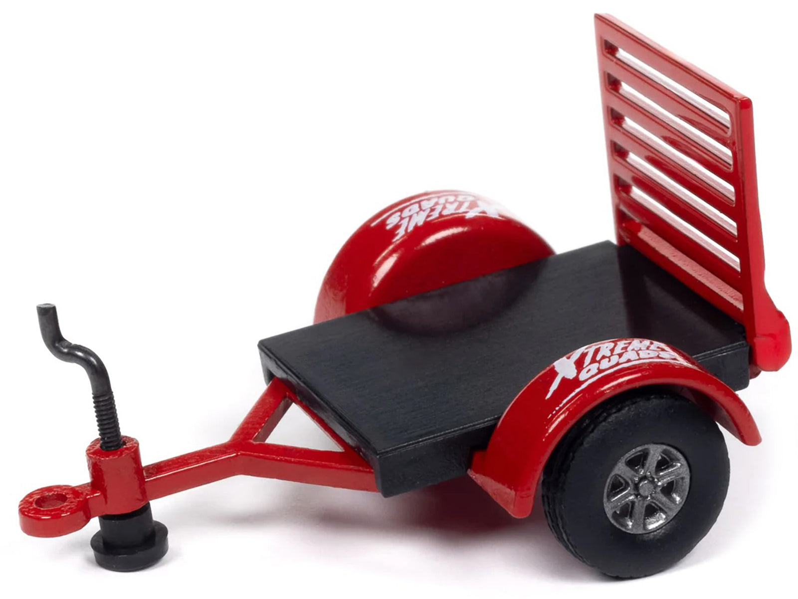 1979 International Scout II Red and Black "Xtreme Quads" with Open Utility Trailer "Tow & Go" Series 1/64 Diecast Model Car by Johnny Lightning Made by Johnny Lightning. Category: 1/64 Scale Sets. High-quality diecast collectible.