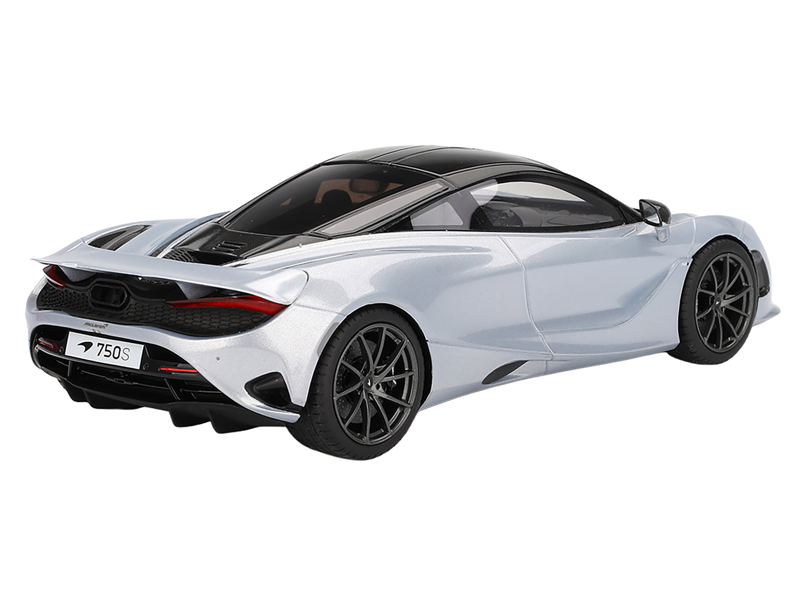 McLaren 750S Ice Silver Metallic with Black Top 1/18 Model Car by Top Speed