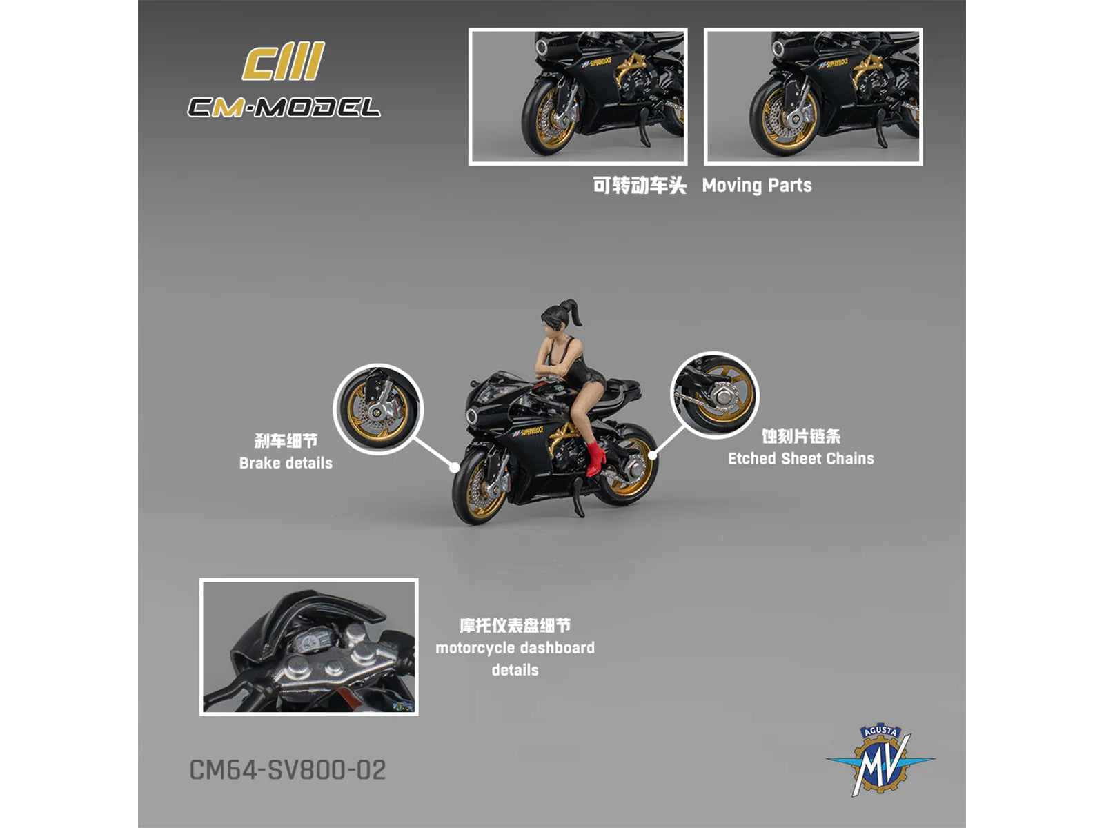 MV Agusta Superveloce 800 Motorcycle Black and Gold with Figure 1/64 Diecast Model by CM Model Made by CM Model. Category: MV Agusta Bikes. High-quality diecast collectible.