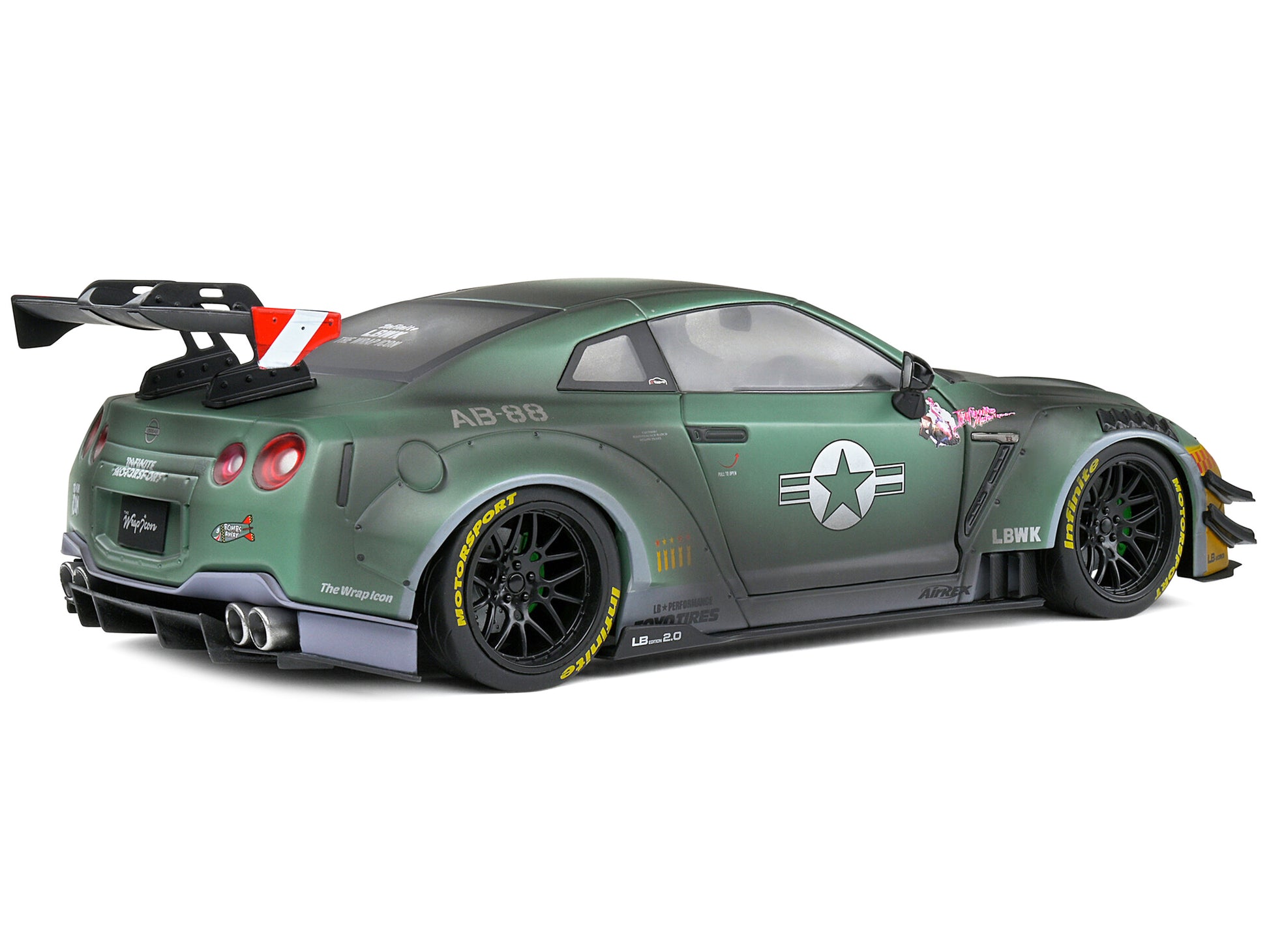 2022 Nissan GT-R (R35) RHD (Right Hand Drive) Liberty Walk 2.0 Body Kit "Army Fighter" "Competition" Series 1/18 Diecast Model Car by Solido 1/18.