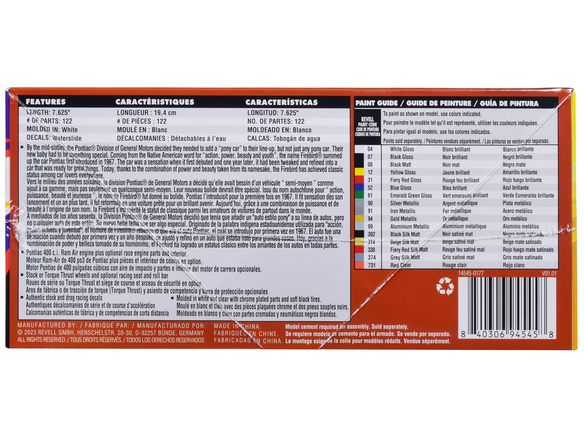 Level 4 Model Kit 1968 Pontiac Firebird 400 2-in-1 Kit 1/25 Scale Model by Revell 1/25.