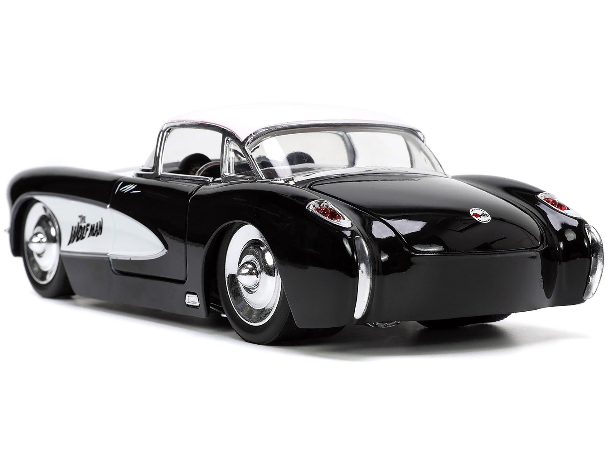 1957 Chevrolet Corvette Black with White Top and Wolfman Diecast Figure "Universal Monsters" "Hollywood Rides" Series 1/24 Diecast Model Car by Jada Made by Jada. Category: Chevrolet Models, Corvette Models, Movie/TV Series Models. High-quality diecast collectible.