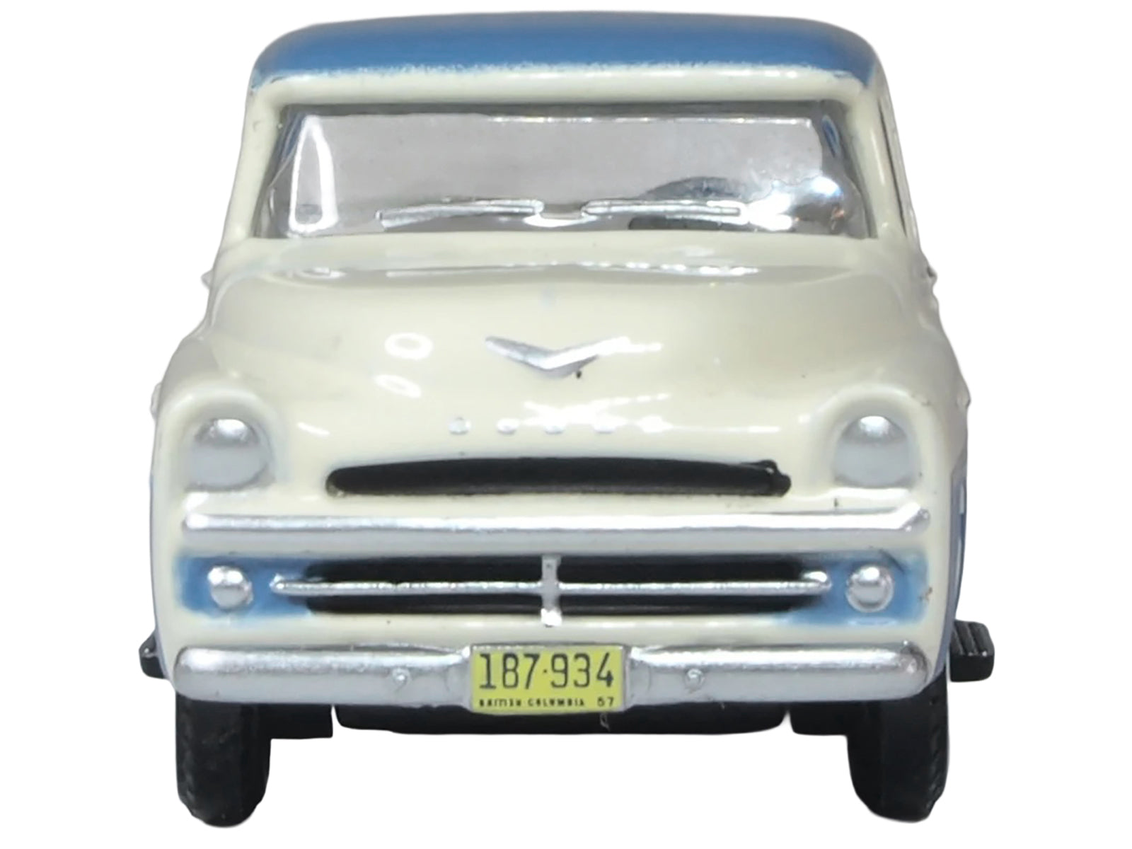 1957 Dodge D100 Sweptside Pickup Truck Ice Blue and Glacier White 1/87 (HO) Scale Diecast Model Car by Oxford Diecast Made by Oxford Diecast. Category: Dodge Models. High-quality diecast collectible.