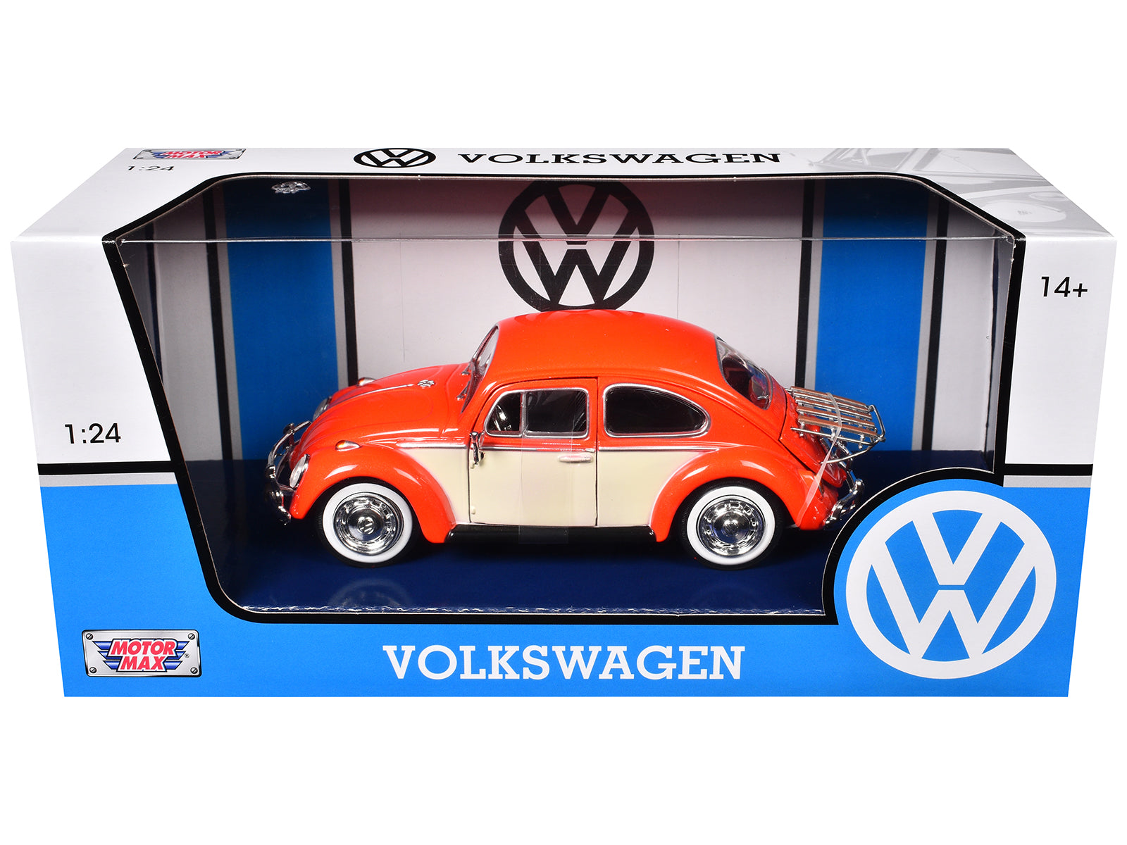1966 Volkswagen Classic Beetle with Rear Luggage Rack Orange 1/24 Diecast Model Car by Motormax 1/24.