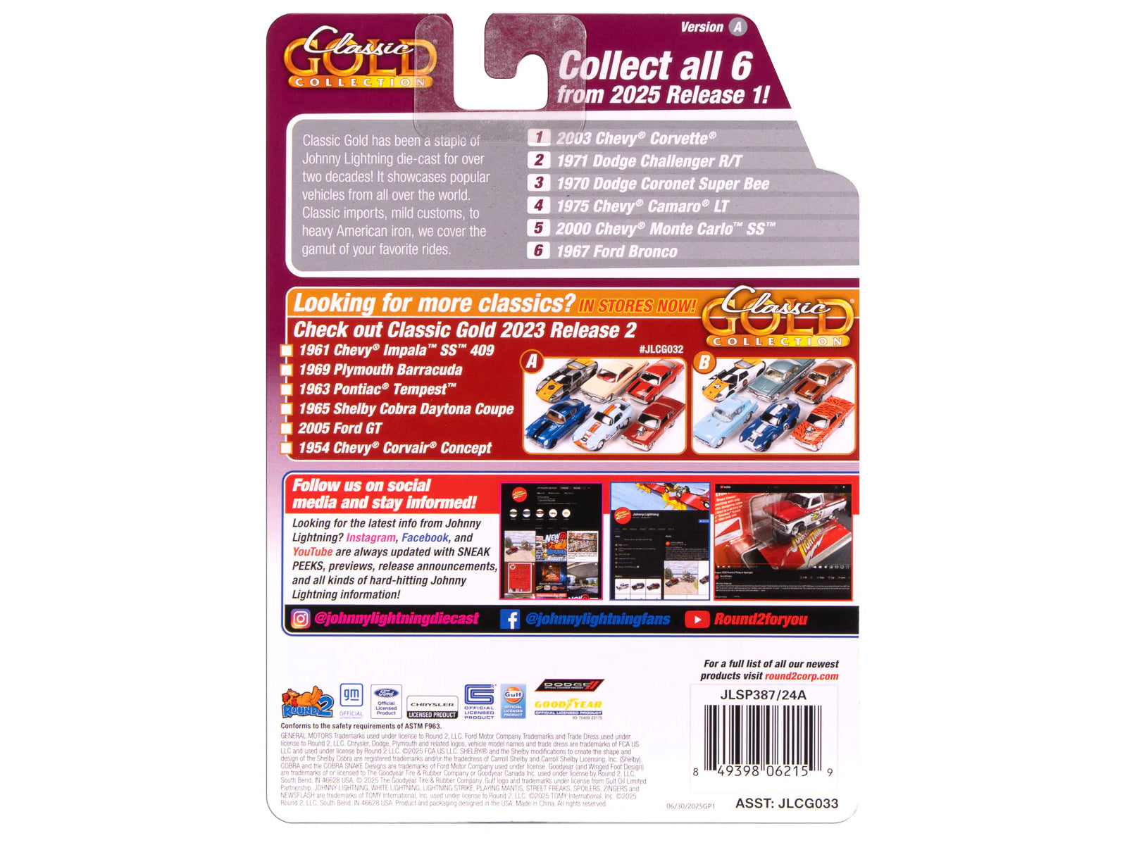 1967 Ford Bronco Wimbledon White "Classic Gold Collection" 1/64 Diecast Model Car by Johnny Lightning 1/64.