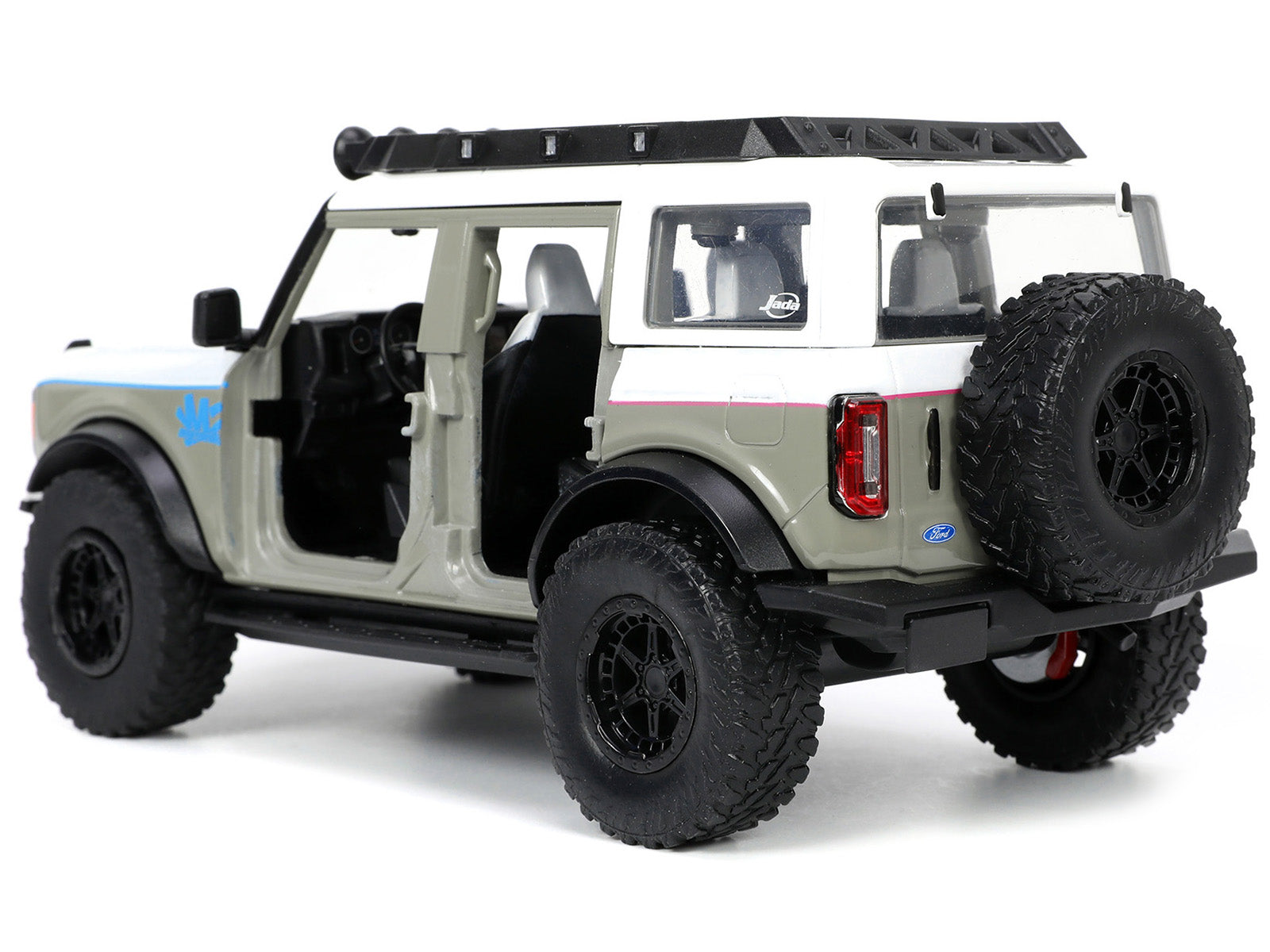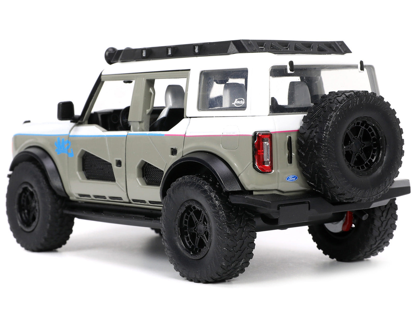 2021 Ford Bronco Gray and White with Matt Black Hood with Roof Rack "M2 Motoring" "Just Trucks" Series 1/24 Diecast Model Car by Jada