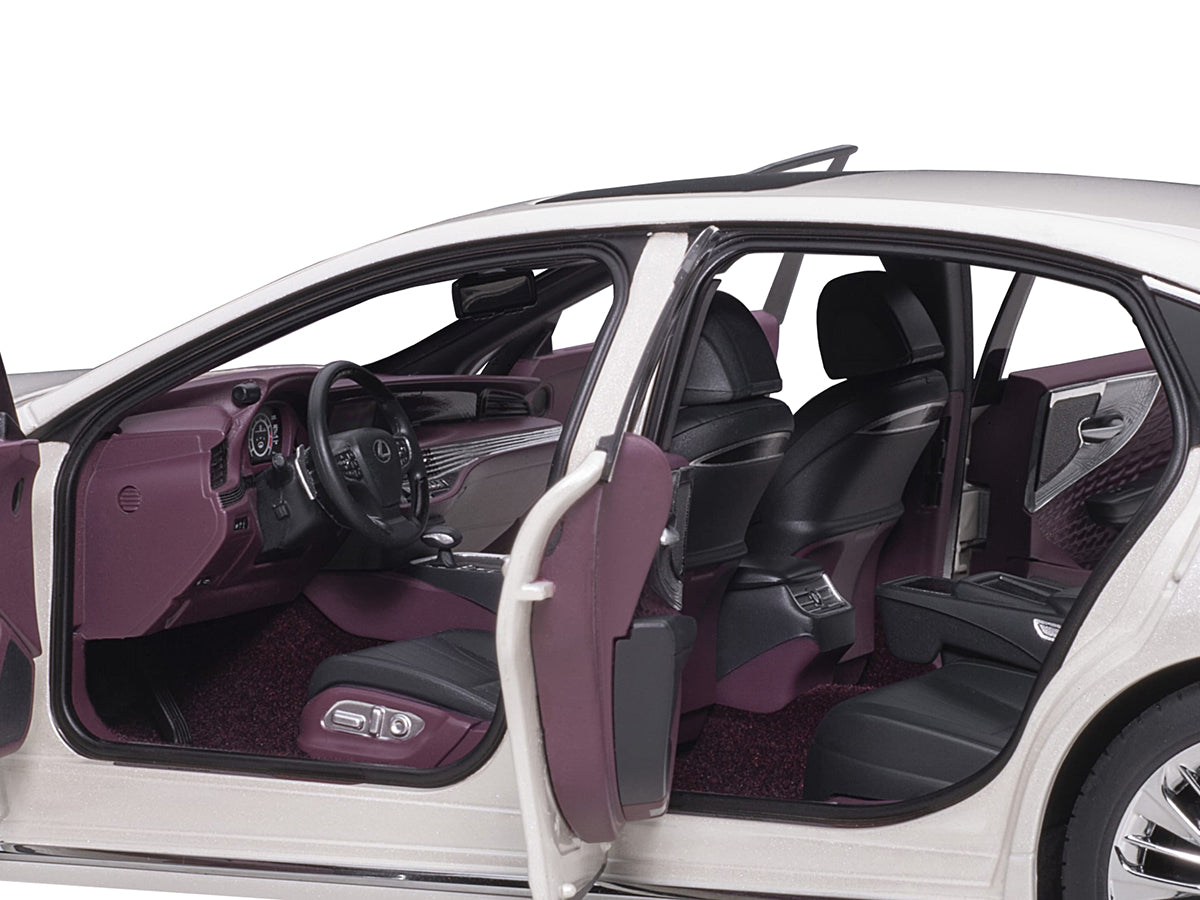 Lexus LS500h Sonic White Metallic with Crimson and Black Interior 1/18 Model Car by Autoart Made by Autoart. Category: Lexus Models. High-quality diecast collectible.