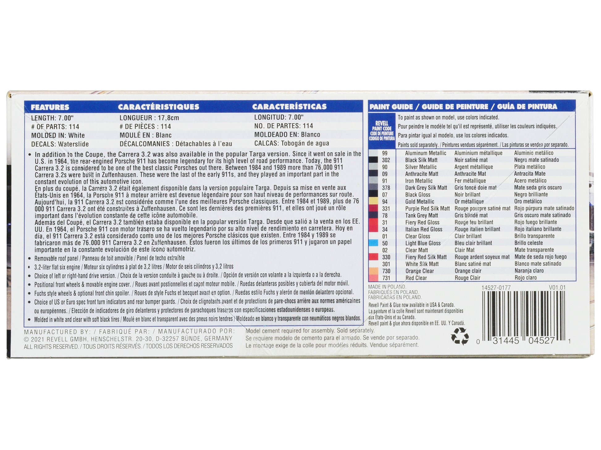 Level 4 Model Kit Porsche 911 Carrera 3.2 Targa 2-in-1 Kit 1/24 Scale Model by Revell 1/24.