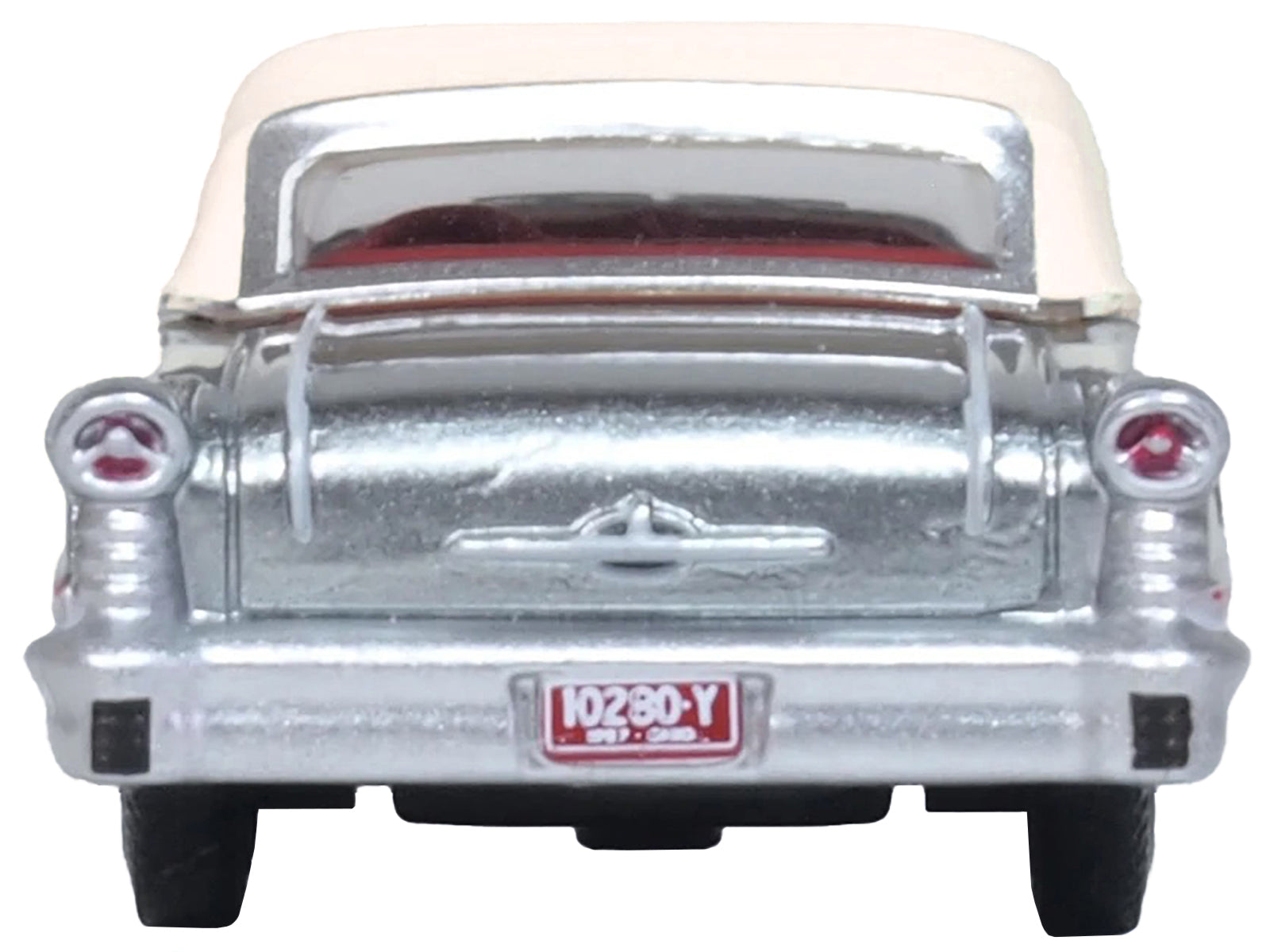 1957 Oldsmobile 88 Convertible (Top-Up) Juneau Gray with White Top and Red Interior 1/87 (HO) Scale Diecast Model Car by Oxford Diecast
