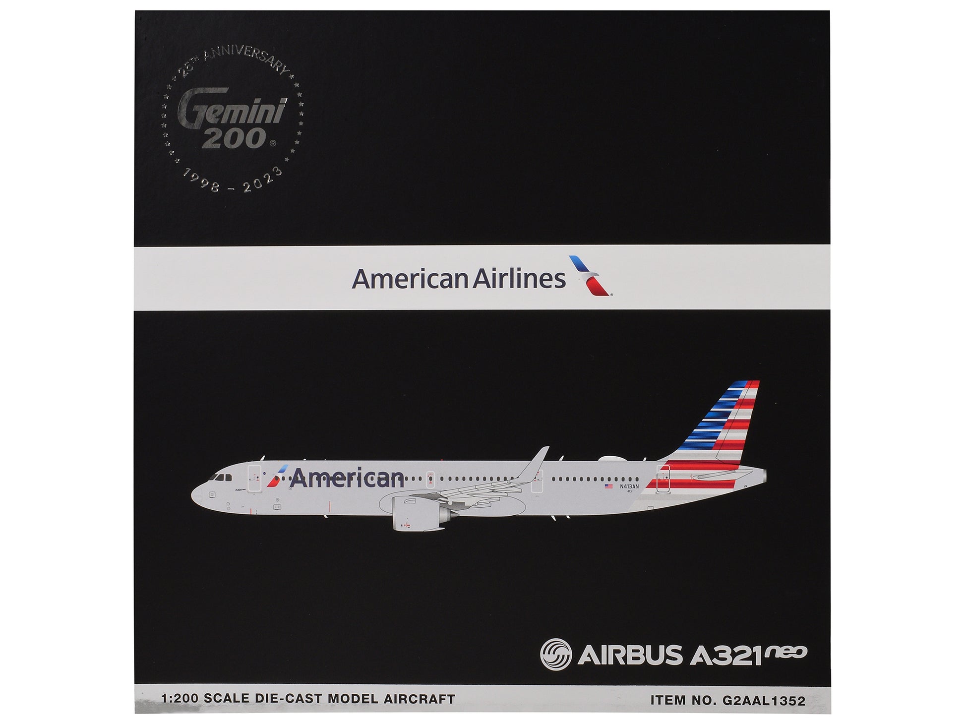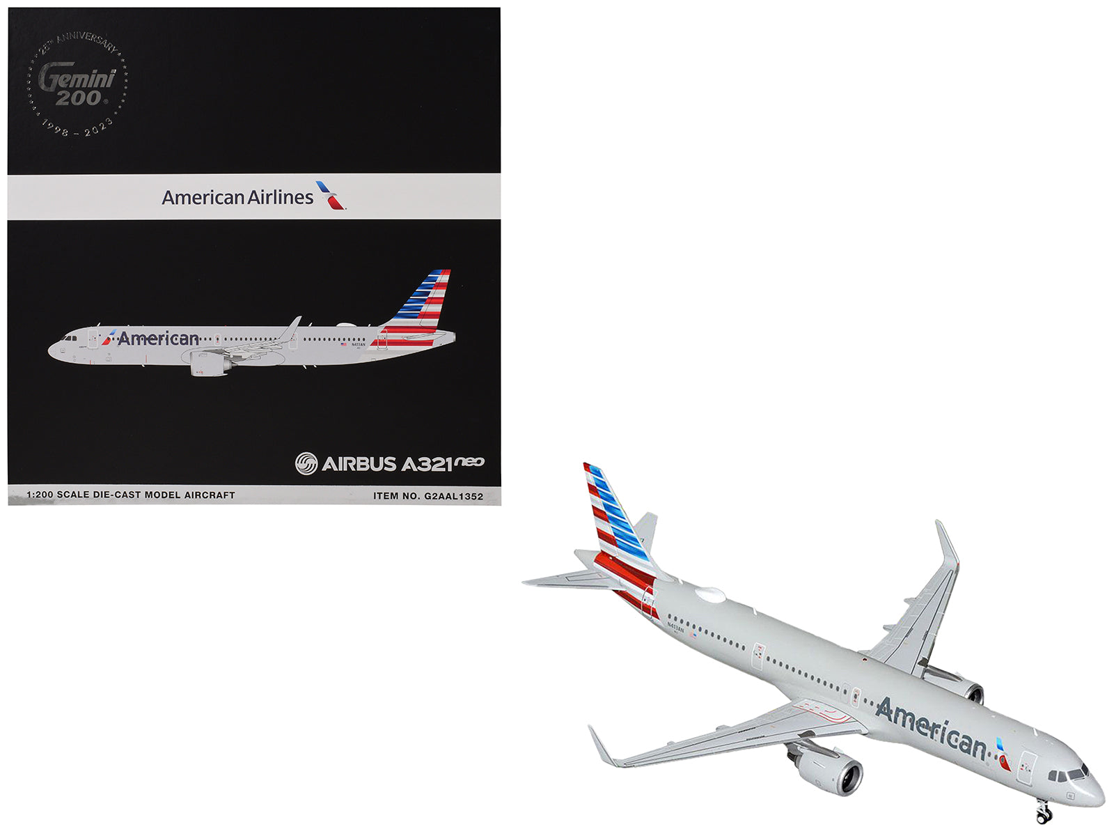 Airbus A321neo Commercial Aircraft "American Airlines" (N413AN) Gray with Striped Tail "Gemini 200" Series 1/200 Diecast Model Airplane by GeminiJets 1/200.