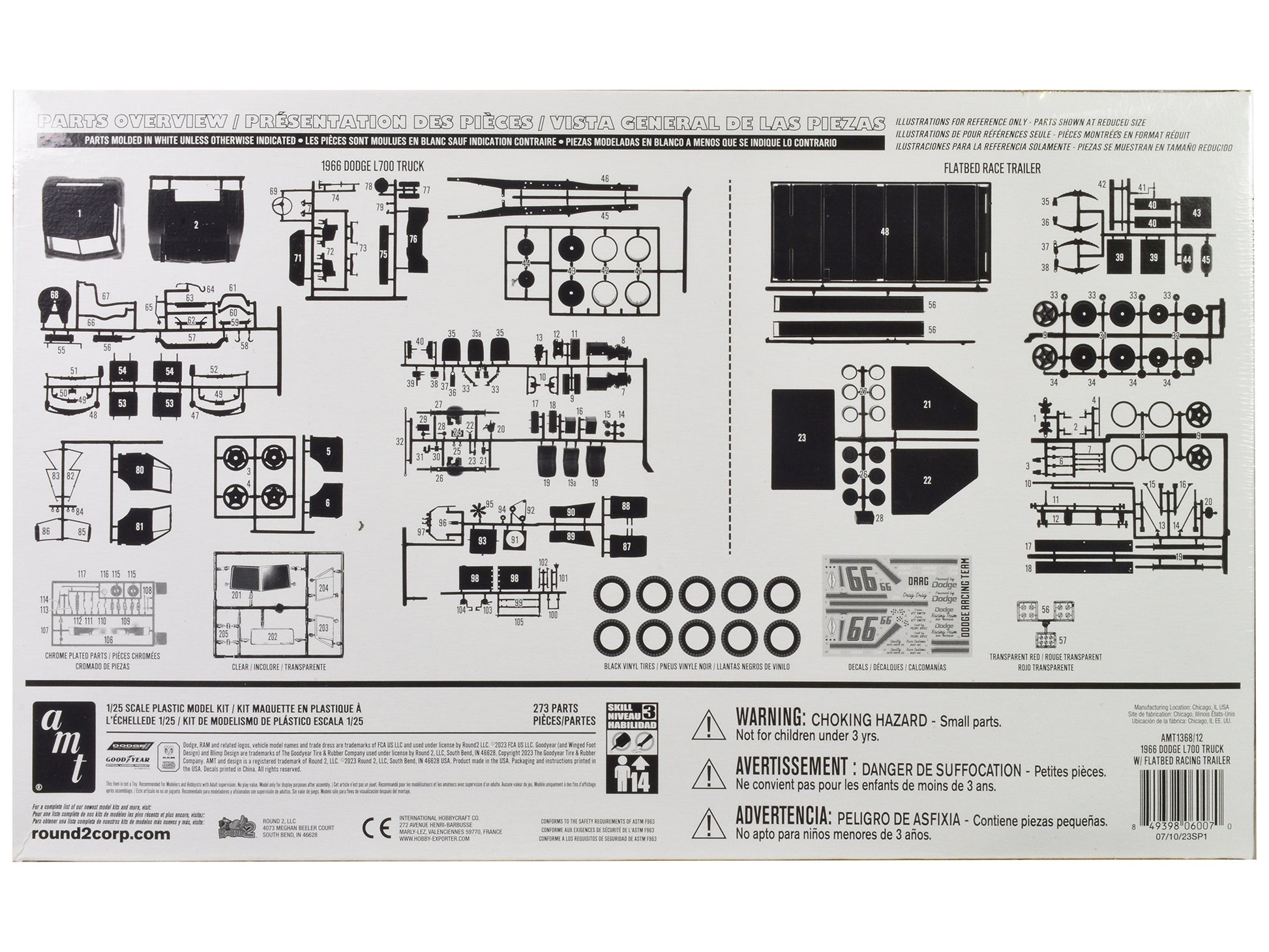 Skill 3 Model Kit 1966 Dodge L700 Truck with Flatbed Racing Trailer 1/25 Scale Model by AMT 1/25.