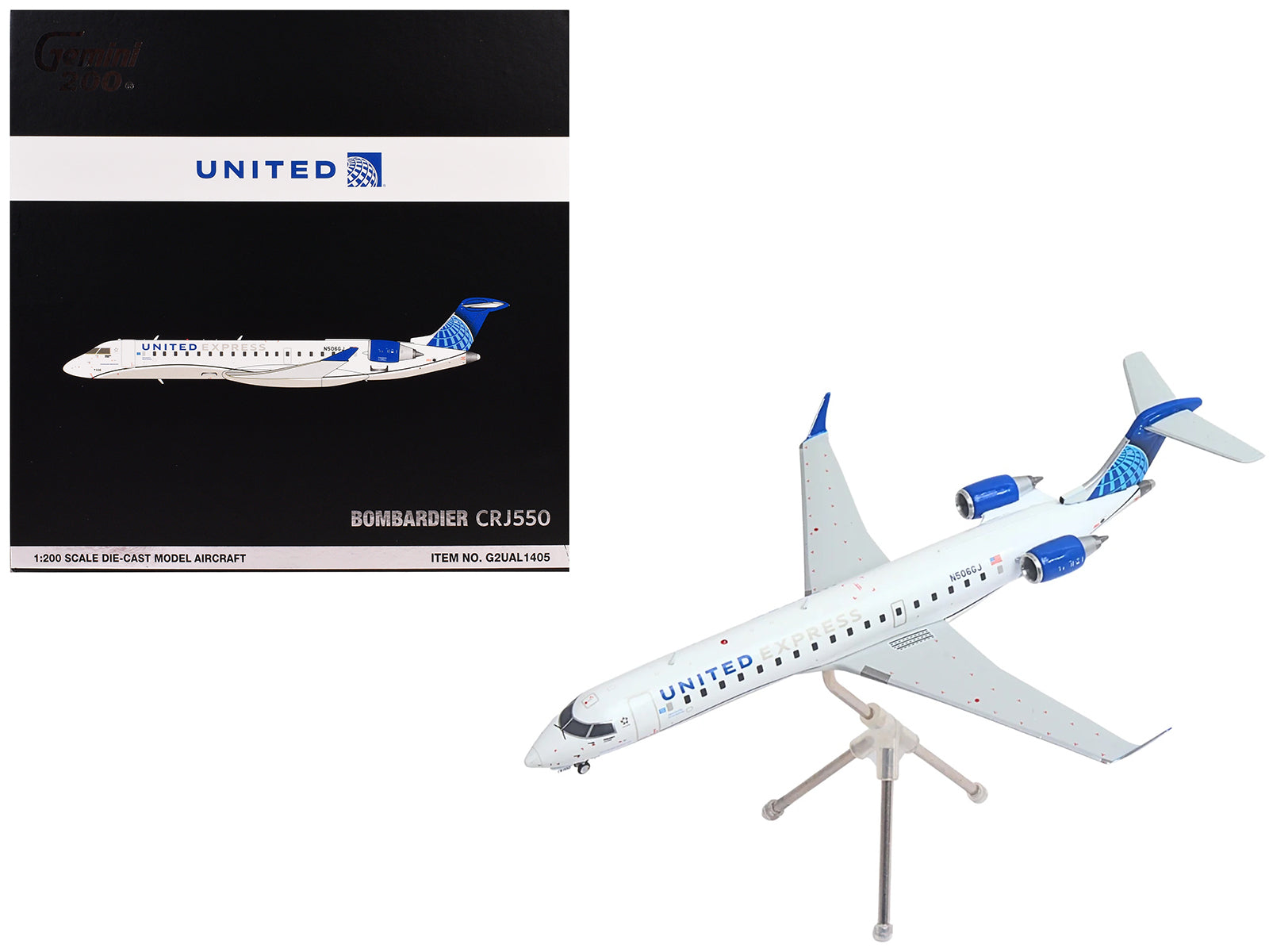 Bombardier CRJ550 Commercial Aircraft "United Express" (N506GJ) White with Blue Tail "Gemini 200" Series 1/200 Diecast Model Airplane by GeminiJets Made by GeminiJets. Category: Aircrafts and War Planes, Bombardier. High-quality diecast collectible.