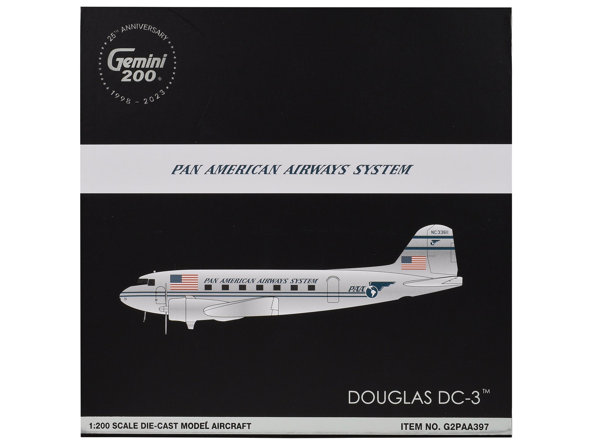 Douglas DC-3 Commercial Aircraft "Pan American Airways" (NC33611) Polished Metal Finish "Gemini 200" Series 1/200 Diecast Model Airplane by GeminiJets