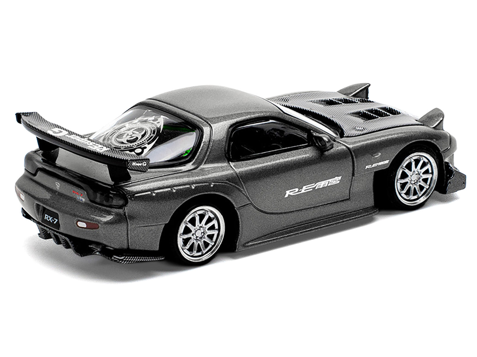 Mazda RX7 (FD) "RE Amemiya" Widebody RHD (Right Hand Drive) Gunmetal Gray Metallic with Carbon Hood 1/64 Diecast Model Car by Pop Race