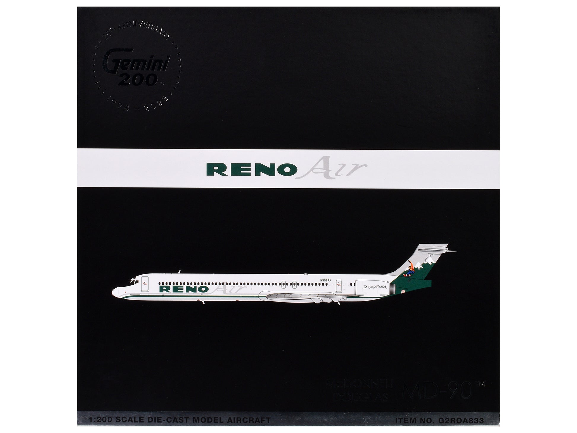 McDonnell Douglas MD-90 Commercial Aircraft "Reno Air" (N905RA) White with Green Tail "Gemini 200" Series 1/200 Diecast Model Airplane by GeminiJets