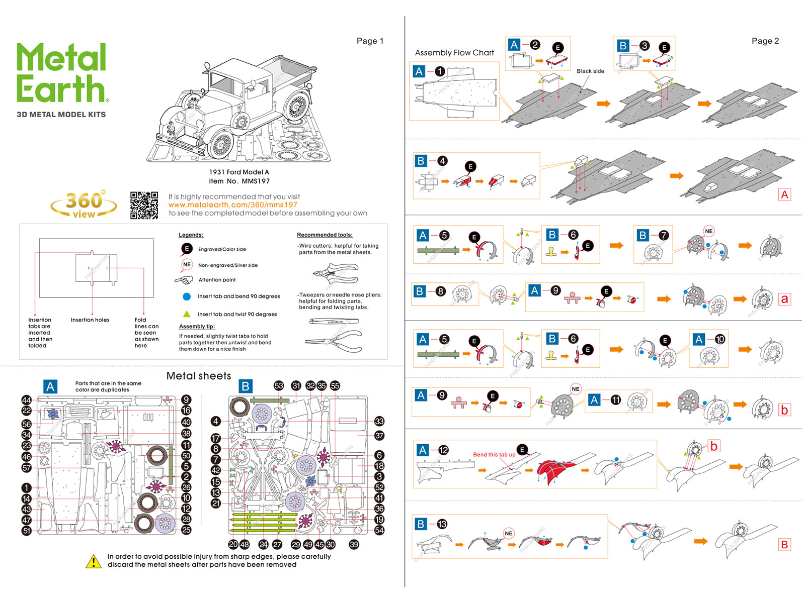 Model Kit 1931 Ford Model A Pickup Truck Green (Moderate Difficulty) Steel Model by Metal Earth.