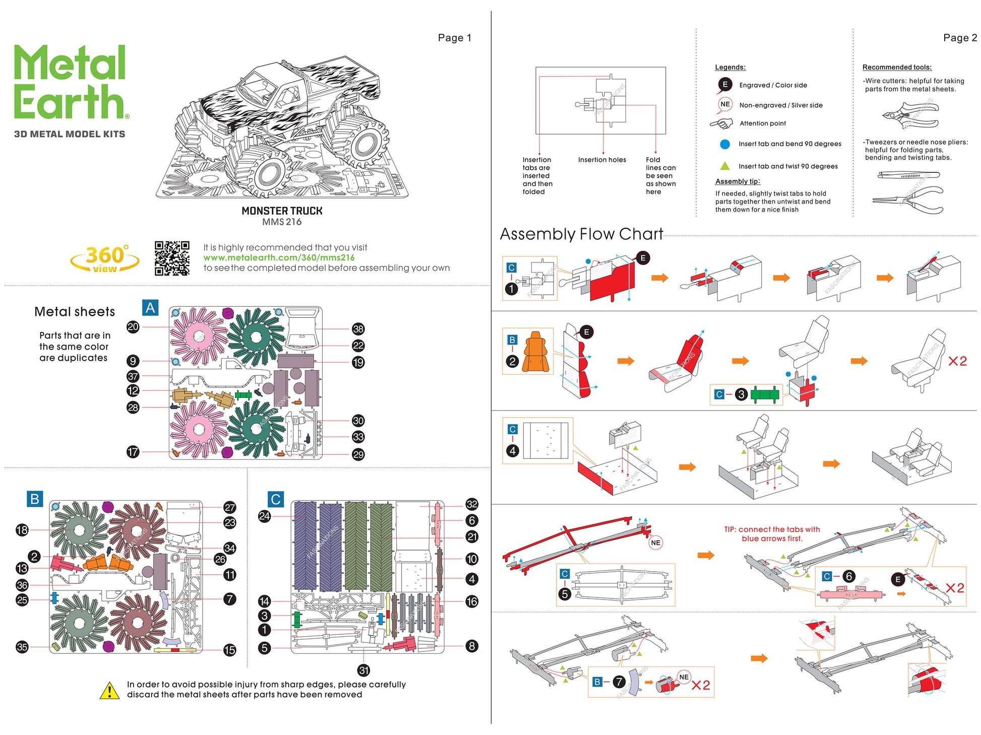 Model Kit Monster Truck with Flame Graphics (Moderate Difficulty) Steel Model by Metal Earth.