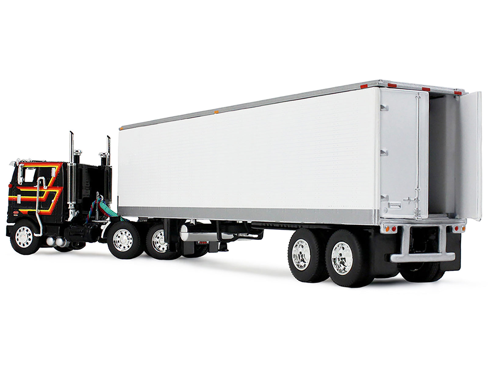 Peterbilt 352 COE 86" Sleeper and 40' Vintage Trailer with Reefer Black with Stripes 1/64 Diecast Model by DCP/First Gear 1/64.