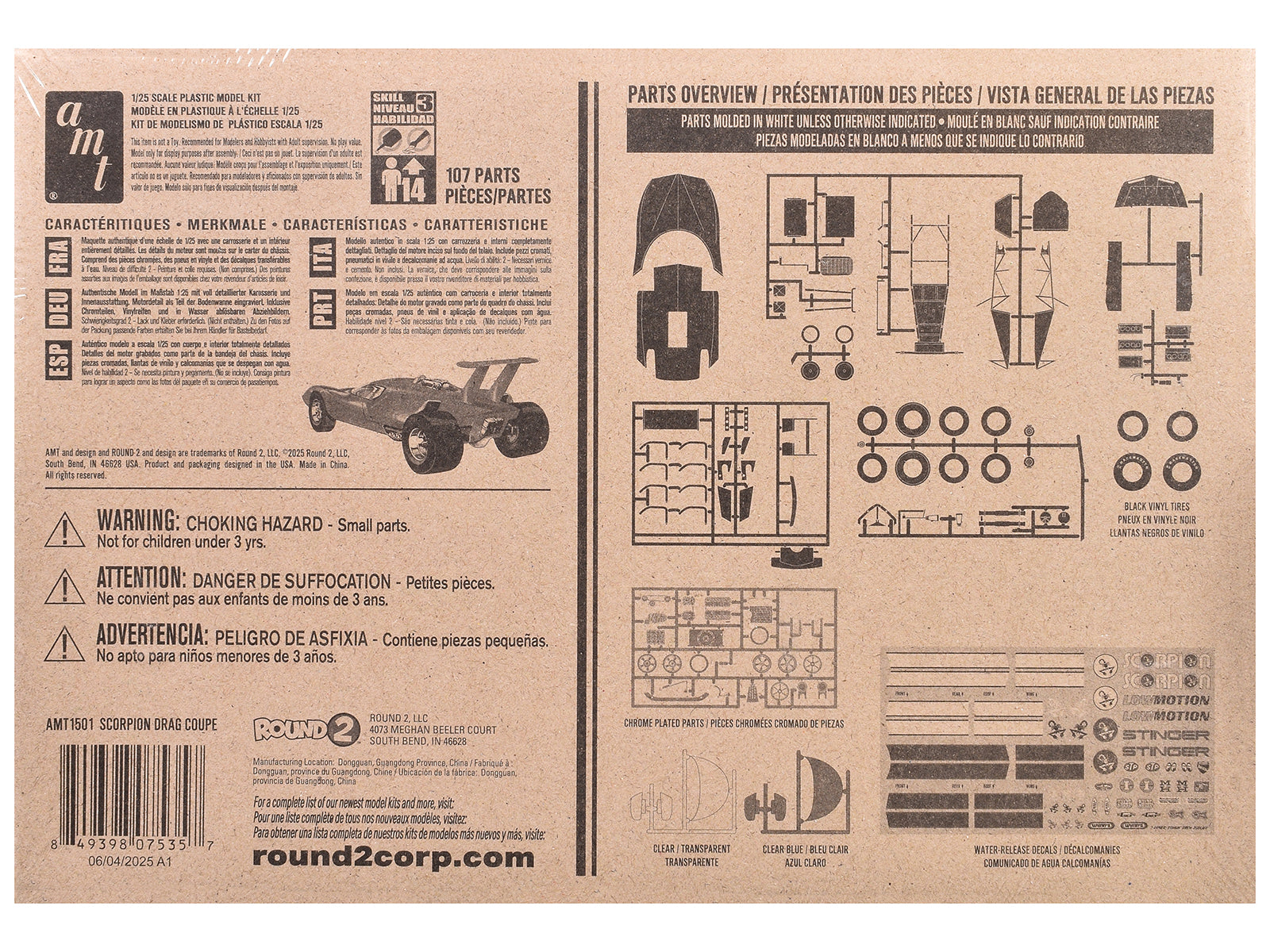 Skill 3 Model Kit Scorpion Mid-Engine Drag Coupe 1/25 Scale Model by AMT 1/25.